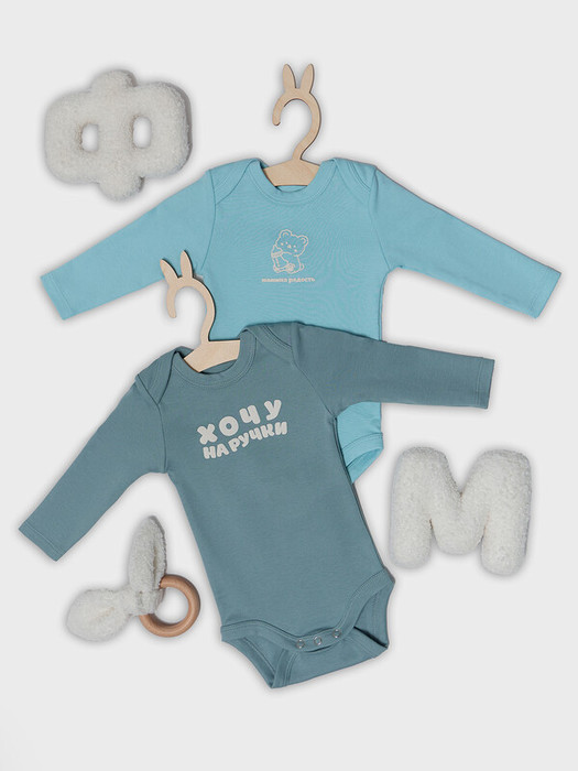 Совместные покупки Челябинск Детская одежда Боди, ползунки и прочее — Mark Formelle БОДИ ДЕТСКОЕ (2ШТ.) 13016-2 13016-2 сланец +пыльная бирюза +печать