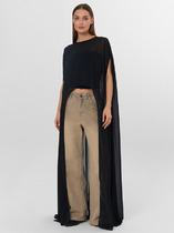 Бриджи с посадкой на талии прямого силуэта. Пояс цельнокроеный с резиной внутри 40RV, отстрочен. По центу пояса пробиты петли, протянут шнур из основного полотна.  Низ изделия застрочен швом в подгибку.