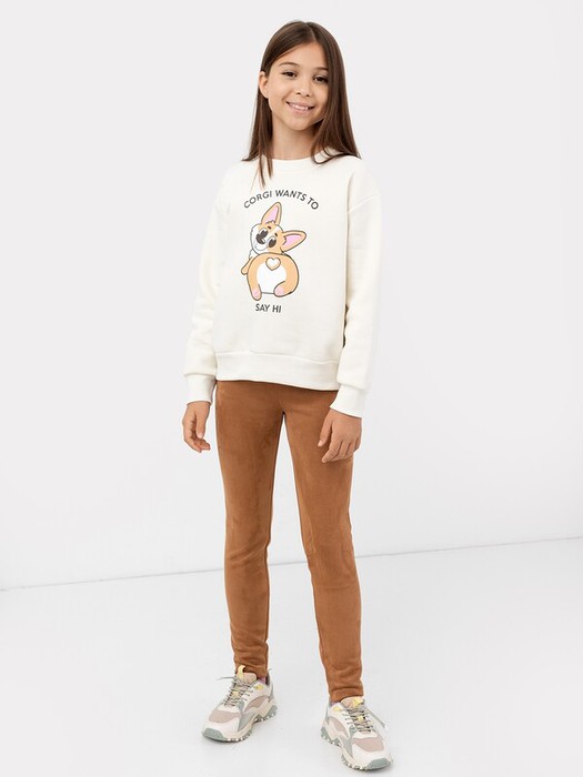 Стильные леггинсы для девочек. Передняя часть выполнена из трикотажного полотна под замшу, задняя – из трикотажного полотна академик. В поясе – жаккардовая эластичная тесьма, отогнутая внутрь. Слегка завышенная посадка дарит комфорт. Нижние срезы с плоскими швами. Функционально и комфортно!