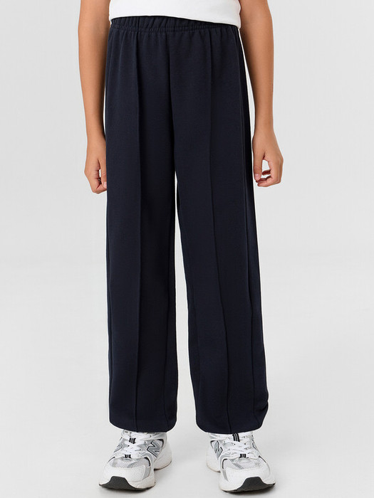 Брюки для девочек. Посадка на талии. Пояс цельнокроеный , внутрь застрочена эластичная тесьма 40RV. Боковые швы перенесены на перед. Низ изделия обработан швом в подгибку, внутрь застрочена эластичная тесьма.