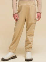 Модные брюки-джоггеры прямого силуэта для мальчиков. Выполнены из трикотажного футера с теплым и нежным подчесом. Пояс с эластичной тесьмой внутри и регулировочным шнуром-завязкой. Штанины завершаются манжетами. Есть удобные боковые карманы.