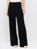 Брюки из трикотажного полотна "интерлок" с боковыми карманами на молнии. Силуэт слегка зауженный к низу. Пояс с эластичной тесьмой внутри и манжеты выполнены из основного материала.