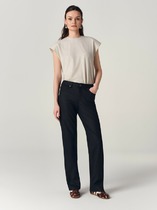 Брюки прямого силуэта. Посадка средняя. Пояс цельнокроеный с эластичной тесьмой внутри (вн. 20мм 20RV). С внутренней стороны пробиты петли и втянут шнур (хб тесьма 10мм) с застроченными концами. В боковых швах обработаны карманы. Подкладка карман из кулирки.