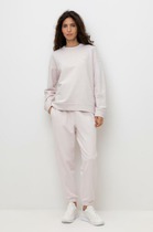 Универсальные брюки женские в красивом однотонном цвете. Выполнены из легкого футера без подчеса. В составе материала брюк преобладает натуральный высококачественный хлопок и модал. Брюки спортивные женские имеют свободный силуэт. Пояс с эластичной тесьмой внутри, также есть функциональные боковые карманы для любимых мелочей. Спортивные брюки женские завершаются широкими зауженными манжетами. Если вам нужны брюки спортивные женские, эта модель для вас. Широкий размерный ряд в линейке позволяет выбрать спортивные брюки девушкам с пышными формами plus-size. Цветовая гамма разнообразная, много красивых пастельных и ярких цветов брюк, каждая модница найдет свой идеальный вариант. Если вам наскучили унылые безликие тона и фасоны, обратите свое внимание на брюки спортивные женские от Mark Formelle. Красивые, стильные и качественные — лучший выбор на любое время года для прогулок, путешествий и активного отдыха. Порадуйте себя и близких стильными новинками из линейки спортивной одежды для женщин!