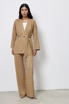 Домашние брюки с принтом — это уют и свобода в каждой детали. Высокая посадка и свободный силуэт из мягкого хлопкового трикотажа обеспечивают комфорт и полную свободу движений, идеально подходя для отдыха дома.