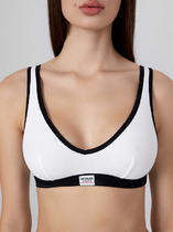 Бюстгальтер женский тишот, на 2 типе каркаса, чашки, из трикотажного полотна рибана. Чашка с вытачкой. По верхнему краю проложена отделочная строчка с верхним застилом. Ластовица из рибаны на подкладке из монокапрона.