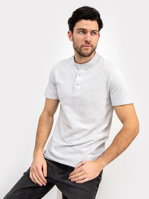Стильная футболка поло с оригинальным воротником-стойкой и удобной застежкой на 3 пуговицы. Благодаря лаконичному дизайну, прямому силуэту и комфортной длине до середины бедер она наверняка станет любимой в гардеробе, ведь отлично подходит практически ко всему.