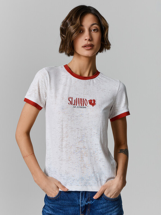 Футболка женская Mark Formelle x Ольга Бузова. Лимитированная коллекция "Мне можно все". Укороченная модель прилегающего силуэта — это стильное и комфортное решение для создания современного и изящного образа. Круглая горловина добавляет классический акцент, а короткие рукава с манжетами подчеркивают аккуратность и завершенность дизайна. Нижний срез изделия обработан швом вподгибку, что обеспечивает долговечность и эстетичный вид. Модель выполнена из эластичного хлопка, который мягко прилегает к коже, дарит комфорт и позволяет телу дышать. Эта футболка станет отличным выбором для теплых дней и стильных ансамблей, гармонично сочетаясь с другими элементами гардероба. Рекомендуем!