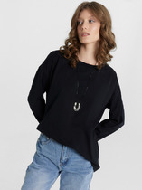 Джемпер женский прямого силуэта из трикотажного полотна кулирка. Горловина круглой формы, широкая обтачка из рибаны. Рукав втачной, длинный. Подгибки низа и рукава широкие.