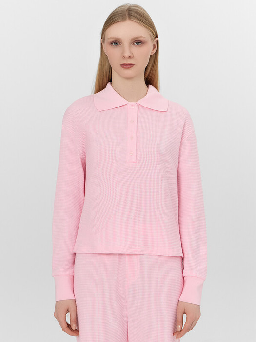 Поло прямое, свободное. Перед с застежкой "поло". Горловина круглой формы. В горловину втачан воротник из довяза (DVC-110/001/0/5 100%хб). Шов втачивания воротника закрыт бейкой из основного полотна. Верхняя планка отрезная. Застежка на 4 петели и пуговицы (D 10мм). Рукава втачные длинные, плечо спущено по низу рукавов отрезные манжеты из довяза (DM2C-90/001-0/5 100%хб). Нижний срез поло обработан швом вподгибку.