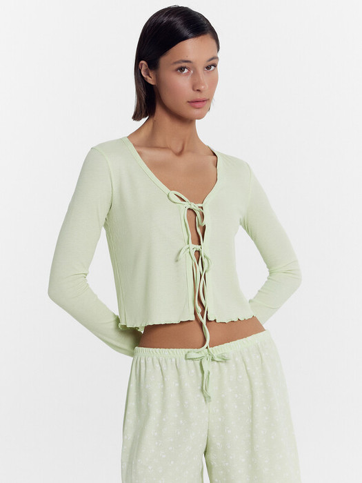 Джемпер прилегающего силуэта. Горловина V-образной формы. Центральная застежка на завязки. Рукав втачной, длинный. Низ блузки и рукавов обработан на микрооверлоке.