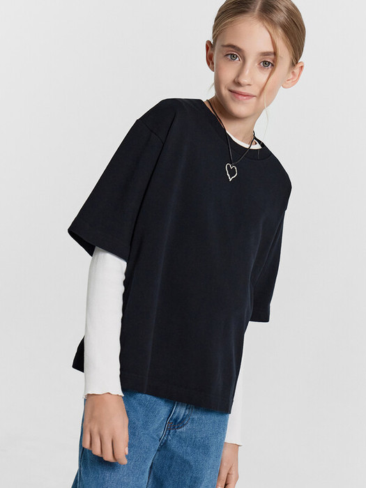Футболка верхняя прямого силуэта. Перед и спинка цельнокроенные. Рукава втачные короткие. Линия плеча спущена. Горловина круглой формы, обтачка из трикотажного полотна рибаны. Шов втачивания рибаны по спинке закрыт бейкой из основного полотна. Низ футболки и рукавов обработан на 2-х игольной плоскошовной машине швом в подгибку.