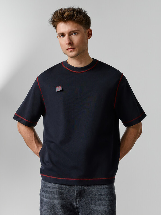 Отделочные строчки на 3х игольной плоскошовной машине с верхним укладыванием: по горловине, окату рукавов, плечевым швам, низу футболки и рукавам.