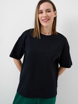 Хлопковая футболка свободного силуэта из трикотажной кулирки. Вырез круглой формы. Свободу движений гарантируют спущенная линия плеча и углубленная пройма. Рукава широкие, чуть выше локтя. Стильная модель!