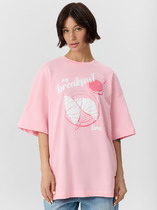 Футболка прямого силуэта из трикотажного полотна кулирка. Горловина круглой формы, широкая обтачка из рибаны.