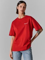 Футболка силуэта оверсайз из трикотажного полотна кулирка. Горловина круглой формы, обтачка горловины из рибаны. Шов горловины спинки закрыт бейкой из основного полотна.