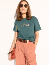 Женская футболка силуэта оверсайз выполнена из кулирки, что обеспечивает комфорт и легкость при носке. Модель имеет круглую горловину и спущенное плечо, создавая стильный и непринужденный образ. Пройма углублена, что добавляет дополнительного комфорта. Широкий рукав длиной чуть выше локтя и удлиненный силуэт придают футболке современный и модный вид. Эта модель идеально подходит для создания повседневных образов, легко сочетается с различными элементами гардероба и добавляет стильности и комфорта в повседневную одежду.