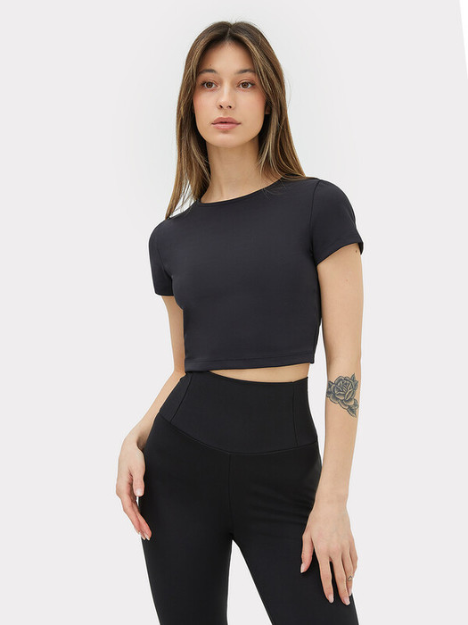 Футболка облегающего силуэта, укороченная.