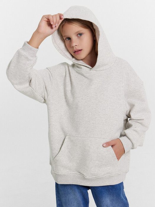Худи для девочек, свободного силуэта (оверсайз), с капюшоном. Горловина округлой формы. Капюшон со средним швом, на подкладке из основного полотна. Шов втачивания капюшона закрыт хб тесьмой. Плечо спущено, рукав втачной длинный. По низу рукава отрезная манжета из рибаны. Пояс отрезной из рибаны, отстрочен. По переду карман кенгуру.