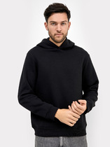 Мужское худи свободного силуэта из трикотажного футера с теплым подчесом. Круглая горловина с капюшоном, длинные рукава на манжетах, слегка спущенная линия плеча, пояс из рибаны – худи удачно сочетает комфортный дизайн и отличное качество!