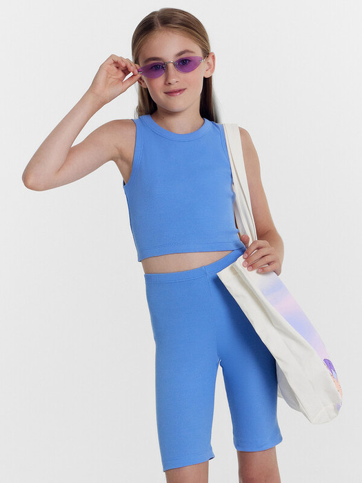 Топ для девочек прилегающего силуэта. Горловина круглая. Проймы и горловина окантованы бейкой из основного полотна. Низ изделия обработан швом в подгибку.