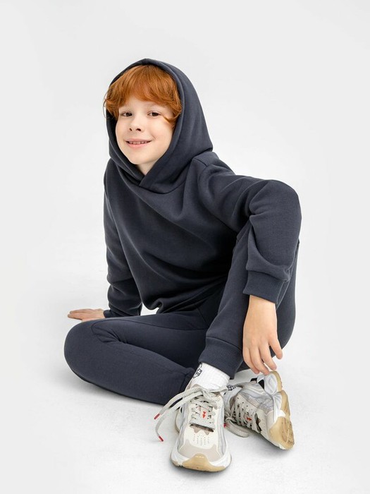 Стильный комплект из легкого трикотажного футера без подчеса. Включает худи свободного силуэта с капюшоном и брюки прямого силуэта с эластичной тесьмой и регулировочным шнурком в поясе. Линия плеча в худи немного спущена, что дарит свободу движений. Рекомендуем!