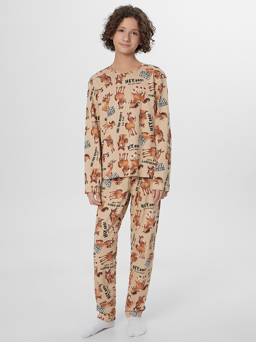 Свободный крой не ограничивает подвижность, что делает пижаму идеальным вариантом для ежедневной носки, спокойного сна или веселых игр в помещении. Практичный комплект станет надежным спутником вашего ребенка.