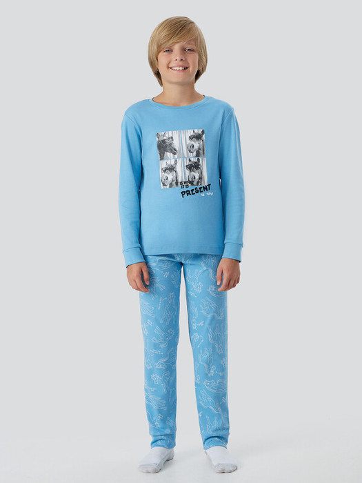 Пижама для мальчиков с надписью "Be wild. Be free" ("Будь диким. Будь свободным") — это комплект для смелых и активных ребят. В набор входит свободный джемпер и прямые брюки, сшитые из мягкой дышащей ткани, которая не раздражает кожу даже во время сна.