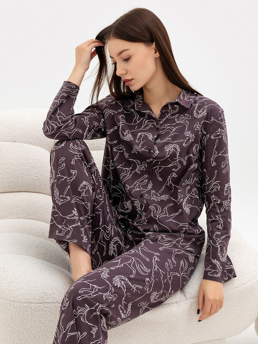 Совместные покупки Челябинск Женская одежда Пижамы, халаты — Mark Formelle КОМПЛЕКТ ЖЕНСКИЙ (БЛУЗКА, БРЮКИ) 592462 592462 кони на цвете кора