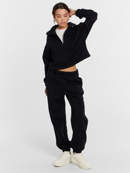 Женский оверсайз-комплект, состоящий из джемпера и брюк. Выполнен из трикотажного футера с теплым и нежным подчесом. Джемпер укороченный, с длинными рукавами, спущенной линией плеча и воротничком-стойкой на молнии. Брюки свободные, с эластичной тесьмой в поясе, манжетами на резинке и боковыми карманами. Рекомендуем для прохладного времени года!