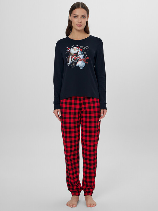 Подарите себе уют и комфорт с женской пижамой от Mark Formelle. Модель, выполненная из высококачественного хлопка, станет отличным вложением в ваш гардероб. Джемпер свободного силуэта с круглой горловиной создаёт нежный и элегантный образ. А прямые брюки с эластичным поясом идеально садятся по фигуре, не сковывая движений и дарят чувство лёгкости и свободы. Эта мягкая и комфортная пижама идеальна для сна, отдыха и домашних дел. Она сочетает в себе стиль и функциональность, позволяя вам выглядеть прекрасно в любой ситуации. Добавьте в свою коллекцию этот прекрасный комплект, который подарит вам тепло и уют в прохладные вечера.