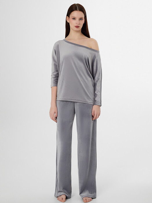 Велюровая женская пижама — это ощущение уюта и нежной роскоши. Комплект состоит из джемпера и брюк, выполненных из мягкого велюра с благородной бархатистой текстурой. Джемпер прямого силуэта с удлиненными рукавами и элегантной горловиной «лодочка» создает расслабленный и изящный вид.