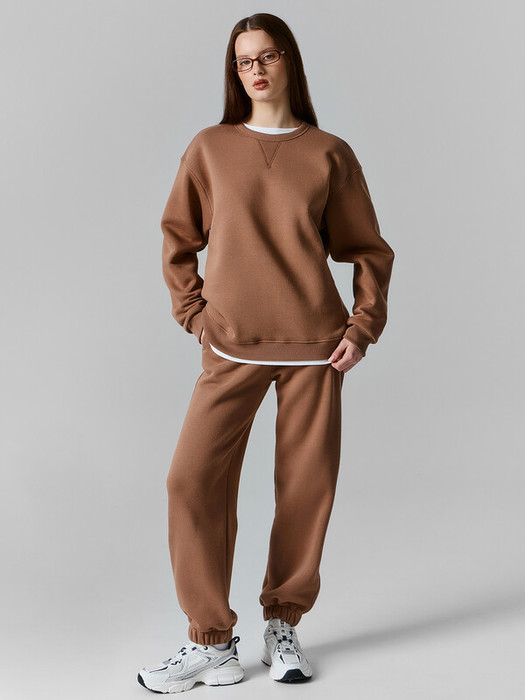 Женский костюм, состоящий из джемпера и джоггеров, создан для повседневного комфорта. Джемпер свободного кроя с мягким внутренним начесом отлично согревает. Круглая горловина, низ изделия и манжеты рукавов отделаны эластичной резинкой-рибаной для удобной посадки. Спереди у горловины настрочен декоративный треугольник из той же резинки. Швы выполнены аккуратно и не ощущаются при носке.