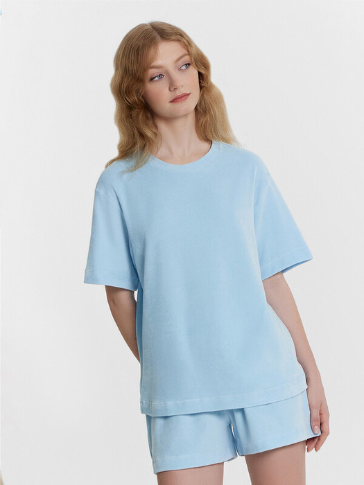 Комплект состоит из джемпера и шорт. Джемпер свободного силуэта. Горловина обработана обтачкой из основного полотна. Рукава втачные короткие, плечо спущено. Низ изделия и рукава обработан в подгибку. Шорты свободного силуэта, короткие. Пояс цельнокроеный, с втаченной эластичной тесьмой (вн. 30мм 30RV). Низ шорт обработан швом в подгибку.