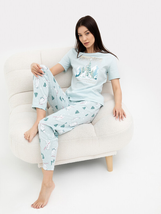 Совместные покупки Челябинск Женская одежда Пижамы, халаты — Mark Formelle КОМПЛЕКТ ЖЕНСКИЙ (ФУТБОЛКА, БРЮКИ) 592369 592369 мятное суфле +мед
