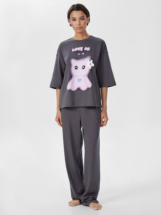Совместные покупки Челябинск Женская одежда Пижамы, халаты — Mark Formelle КОМПЛЕКТ ЖЕНСКИЙ (ФУТБОЛКА, БРЮКИ) 592528 592528 черно -серый +печ