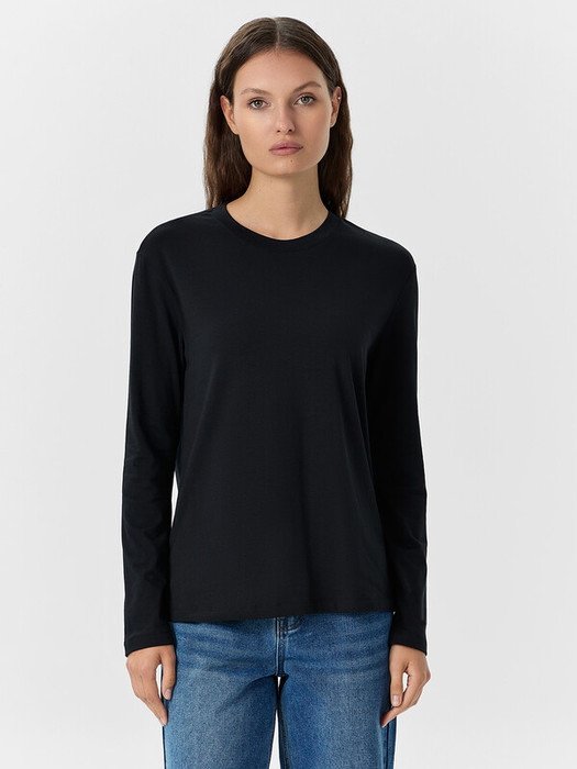 Этот лонгслив станет базовым элементом в гардеробе каждой современной женщины. Прямой силуэт и круглая горловина придают модели классический и стильный вид. А длинные рукава и спущенная линия плеча добавляют дополнительное удобство и расслабленность. Изготовленный из хлопковой кулирки, лонгслив гарантирует мягкость и приятные ощущения при носке. Идеальный выбор для создания различных образов на каждый день.