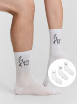 рис.3227 Мультипак из трех пар Унисекс носков, высоких с плотным бортом и рисунком в виде мемов на паголенке.