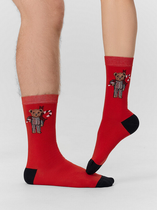 Рис.3454 Носки унисекс классические с рисунком в виде медведя и надписи.