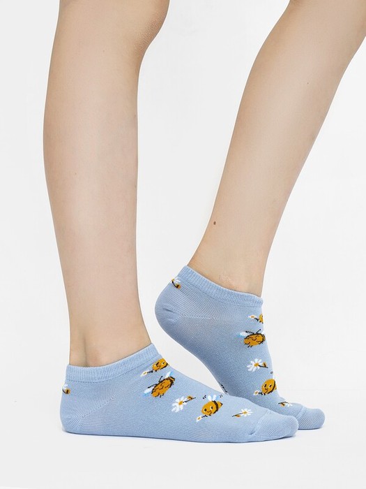 рис.1952 Укороченный детский носок с рисунком в виде пчелок и ромашек.