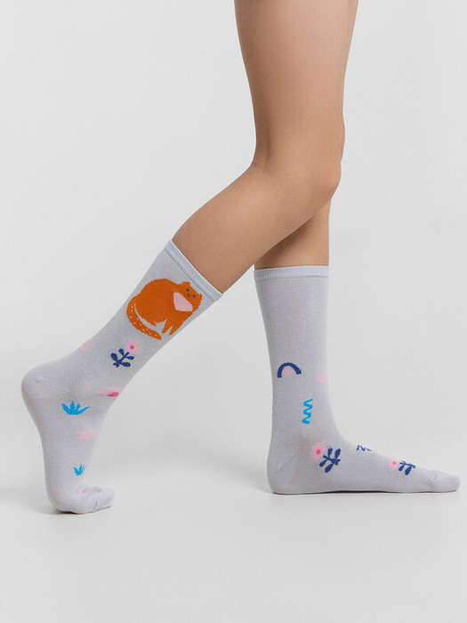 рис.3064  Детские классические носки с рисунком в виде котиков и цветочков.