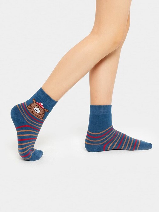 рис.1113 Детский махровый носок с рисунком в виде медведя и полосок