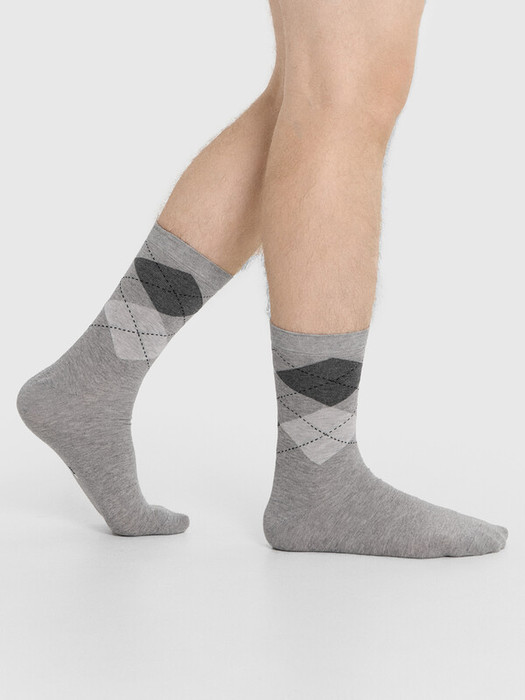 Носки мужские классические высокие с рисунком в виде ромбов - базовый элемент мужского гардероба. Мужские повседневные носки  мы изготавливаем из гребенного хлопка высочайшего качества - тонкого, прочного и долговечного. Волокна хлопка отлично пропускают воздух, позволяют коже дышать и впитывают влагу. Именно поэтому классические мужские носки дарят ощущение комфорта и свежести в течение всего дня. Благодаря небольшому количеству эластана в составе, носки мужские хорошо облегают стопу и сохраняют форму даже после множества стирок. Пятка и мысок усилены, носки будут носиться дольше. Мягкая эластичная резинка не препятствует кровообращению и равномерно распределяет давление: носки надежно держатся на ноге, не сползают как носки без резинки мужские. Общеизвестно, что носки мужские черные являются наиболее популярными и востребованными, но в ассортименте белорусского бренда Mark Formelle представлены и другие базовые расцветки: есть и мужские серые носки, и модели в синем, коричневом, желтом, оливковом цветах, а также огромный выбор носков с оригинальными дизайнерскими решениями и рисунками.