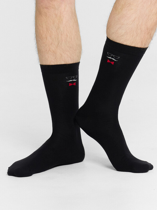 рис.2252   Мужской носок классический высокий с рисунком в виде очков, усов и бабочки.