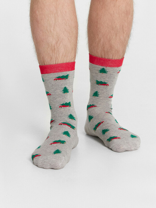 рис.2977 Мужской носок классический, высокий с рисунком в виде елок.