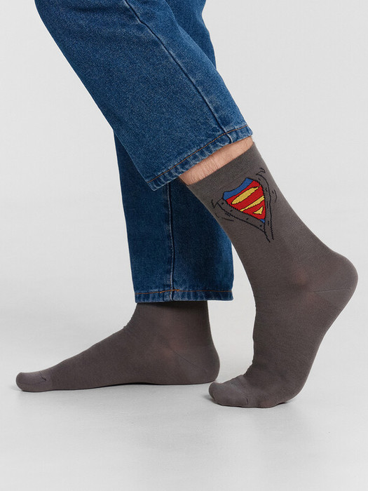 рис.3042 Мужской носок классический, высокий, с рисунком в виде логотипа Супермена.