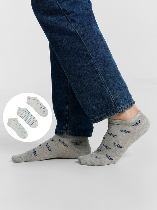 рис.2736  Мультипак из трех пар укороченных мужских носков с рисунком в виде оригами-самолетиков, корабликов и полосок.