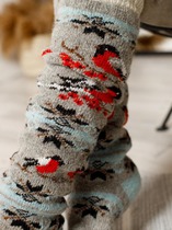 рис.3370 Женские, классические носки с рисунком в виде перекидного переплетения (лапша 5:1) из смешанной пряжи с содержанием шерсти и льна.