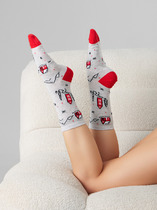 рис.2344 Женский носок с высоким плотным бортом и рисунком в виде котика.