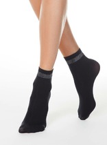 рис.2868 Женский носок с высоким плотным бортом, а также с рисунком в виде надписи и кота.
